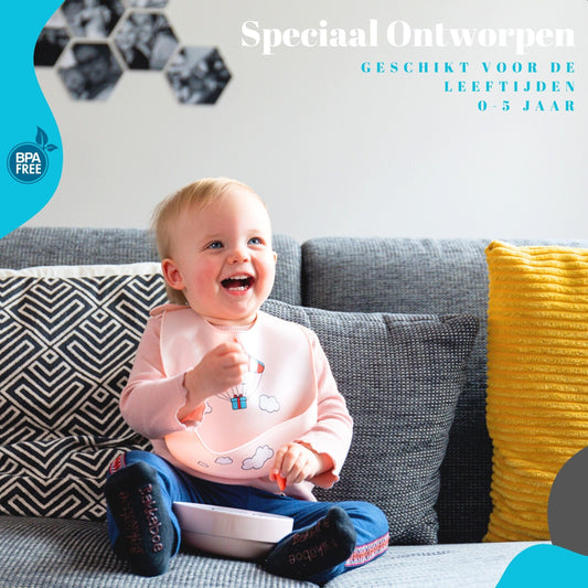Siliconen Slabbetje met Print - 2 stuks - Roze en Geel